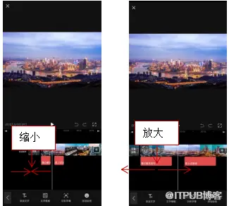 用双指在视频轨道上内缩、外扩,可以缩放时间线,如图所示。