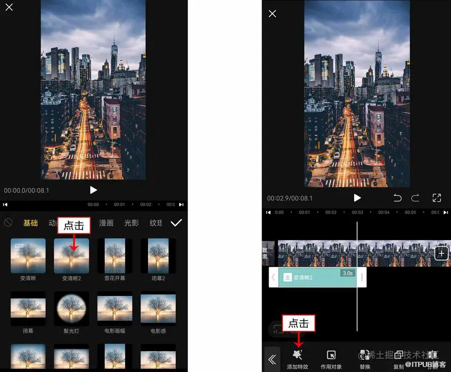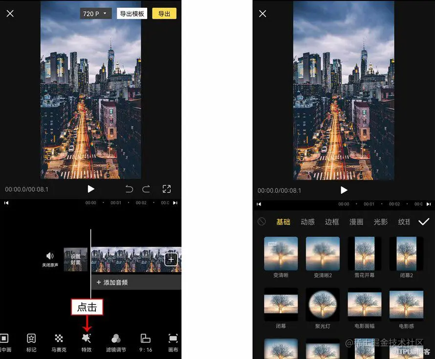 添加视频特效能够丰富画面的内容和提高视频的档次。比如添加“变清晰”特效,就会给视频聚焦的感觉。