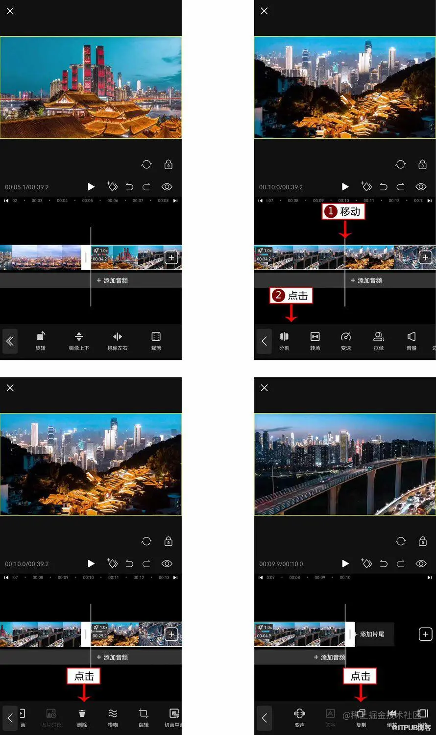10. 在剪辑界面点击“复制”按钮,即可快速复制所选片段,然后添加到想要的地方,如图所示。