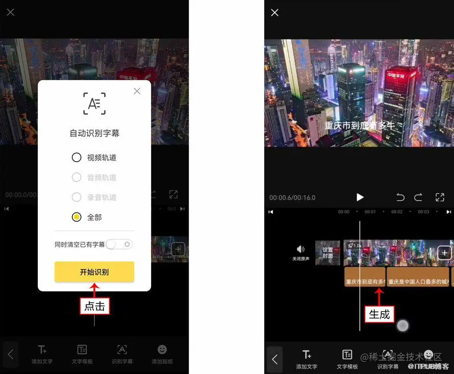 4. 等待识别完成,即可生成对应的字幕轨道,如图所示。