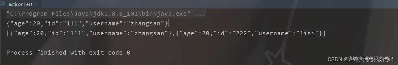 String jsonStr = "[{"name":"王五","age":20,"addr":"北京大兴区"}, {"name":"李四","age":22,"addr":"北京海淀区"}]";