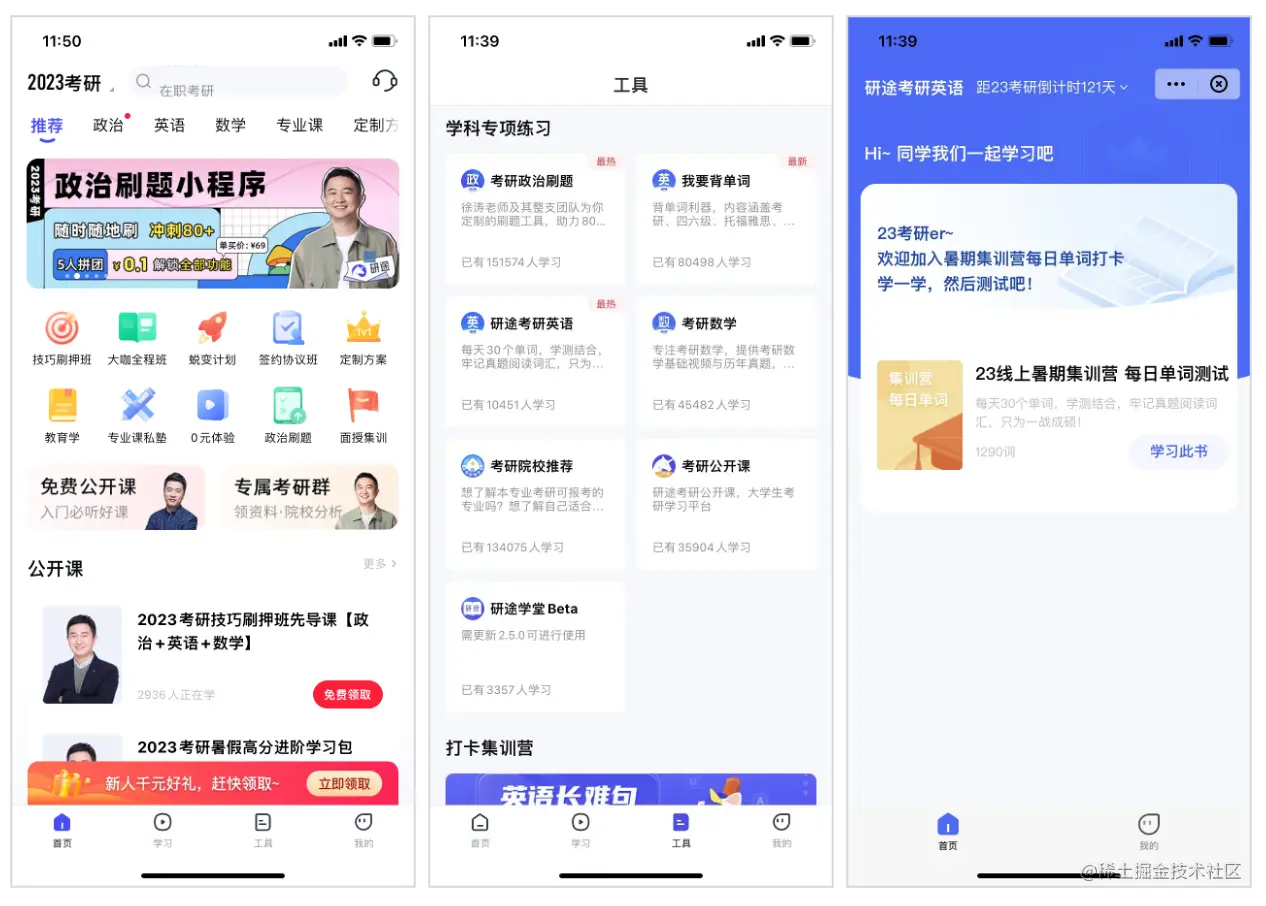 研途考研:将小程序引入到移动教学App