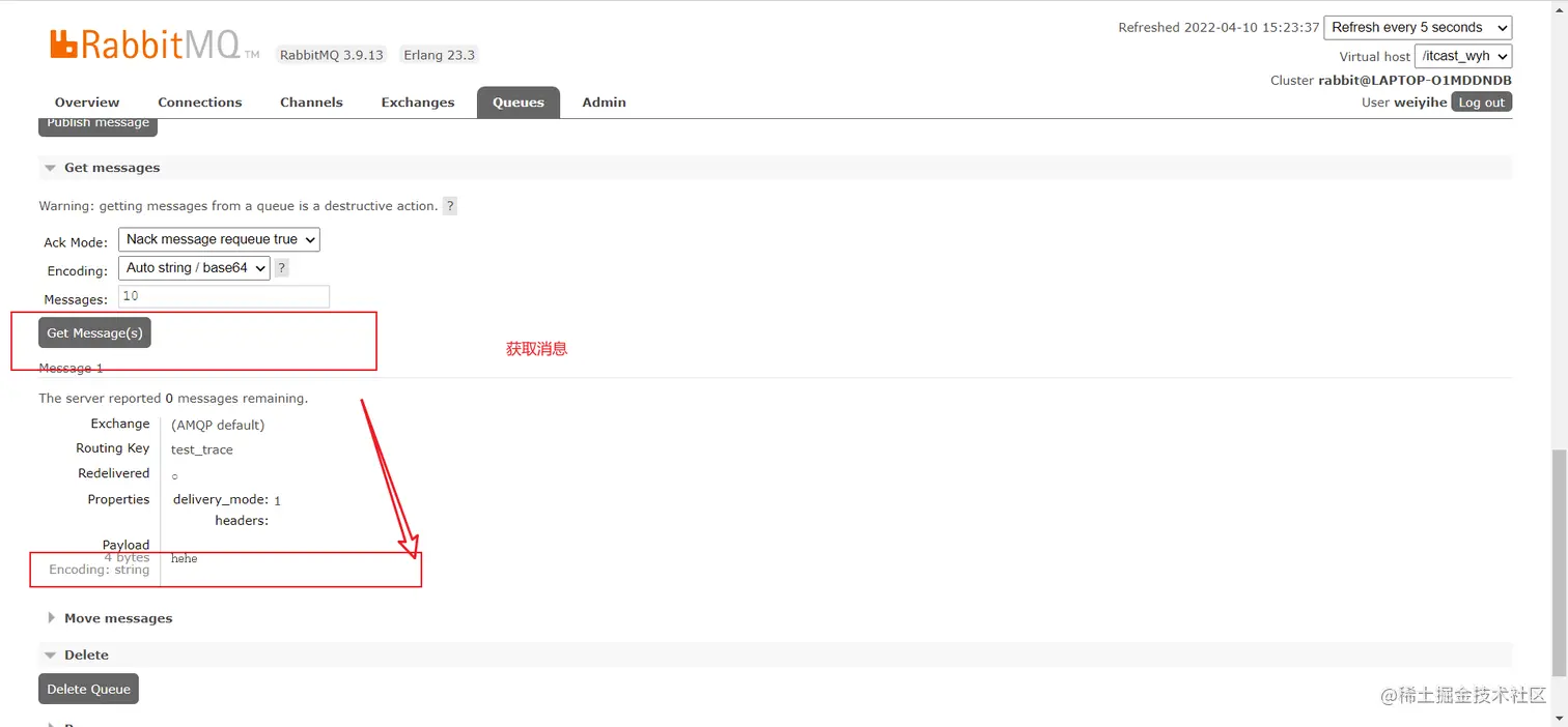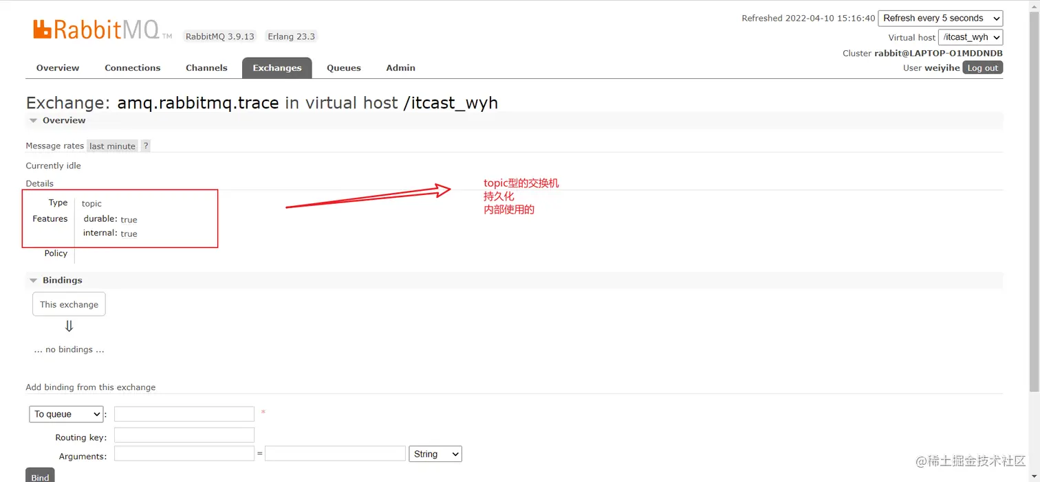 然后amq.rabbitmq.trace和队列进行绑定
