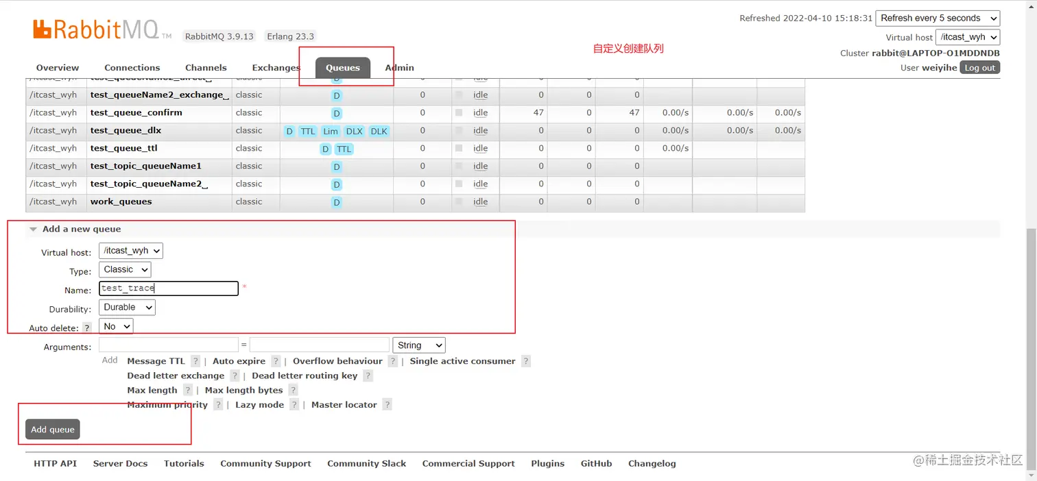 我们自定义创建一个新的队列