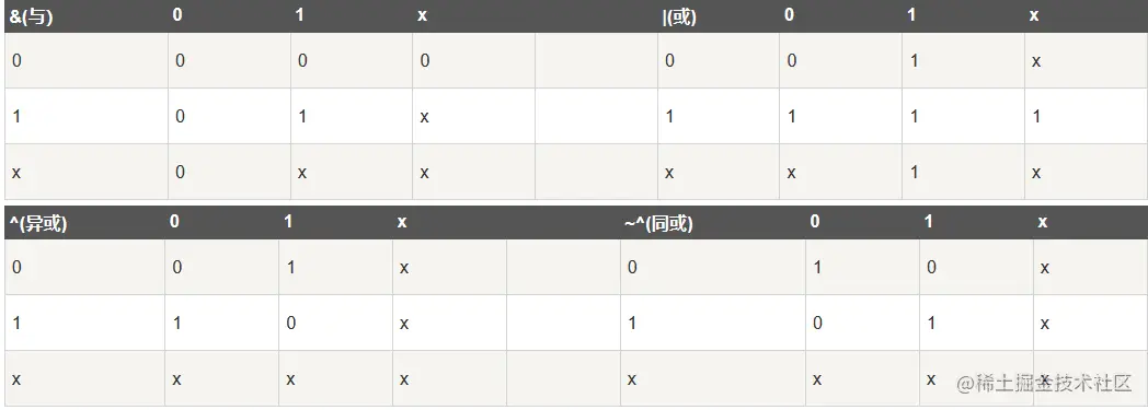如果任意一个操作数包含 x,逻辑操作符运算结果不一定为 x。