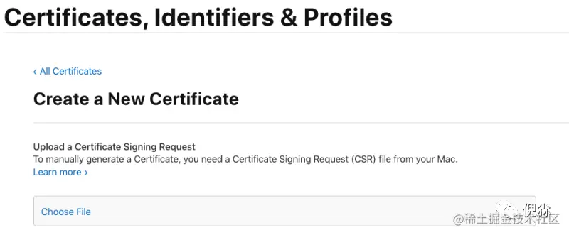 然后我们就可以在开发者网站上传CSR文件,由CA 进行签名并生成开发者证书。开发者证书始终保留在开发者网站上,开发者可以删除(Revoke)已注册的证书。
