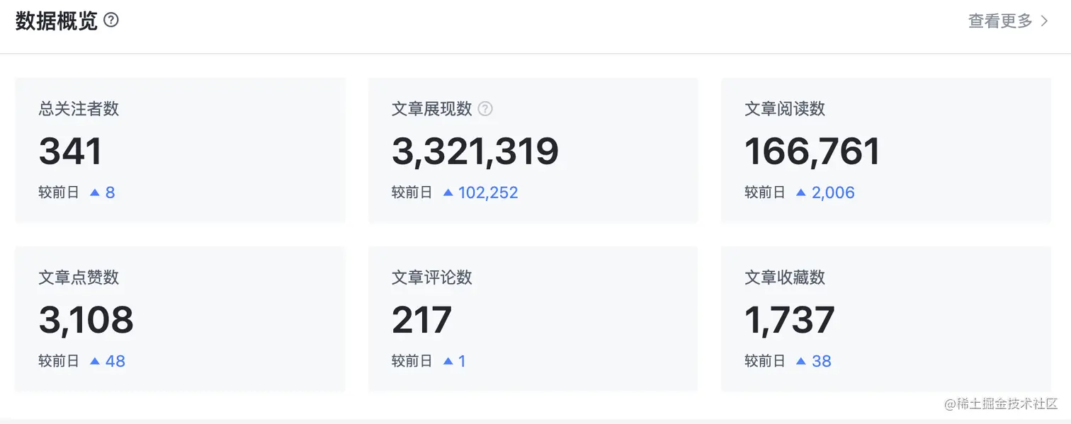 今年9月分开始,我陆续开始在掘金写技术文章,收货到了许多的认可,自己在技术方面也得到了成长。所以,现在基本上已经养成了日更的习惯。这种利他、共赢的感觉真好啊。