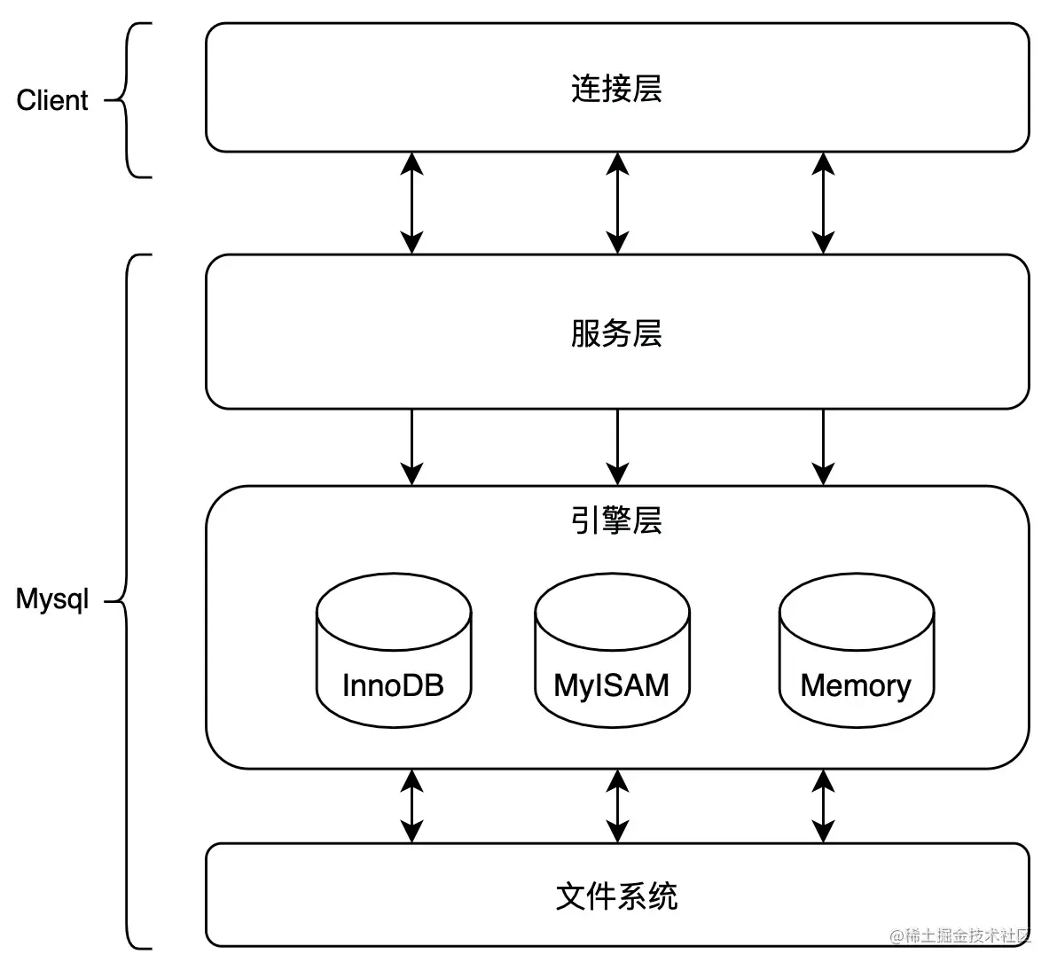 MySQL 服务层主要负责 SQL 语法解析、生成执行计划等,并调用存储引擎层去执行数据的存储和查询。