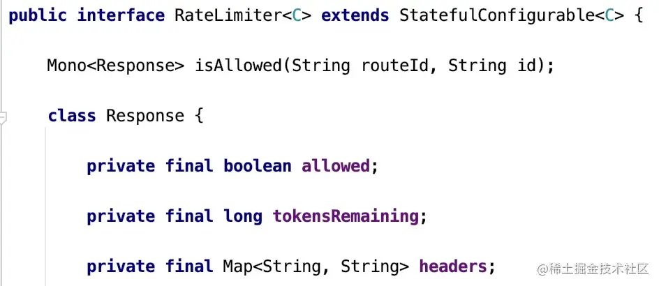 RateLimiter是允许用户自定义实现的,只需要实现isAllowed方法,看一下方法定义。