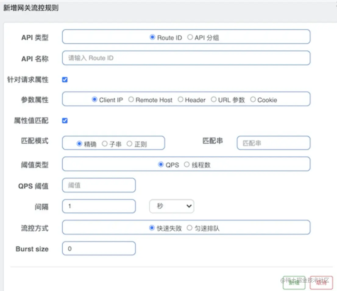 Sentinel可以支持很多流量防护规则,这里仅针对网关流控规则。