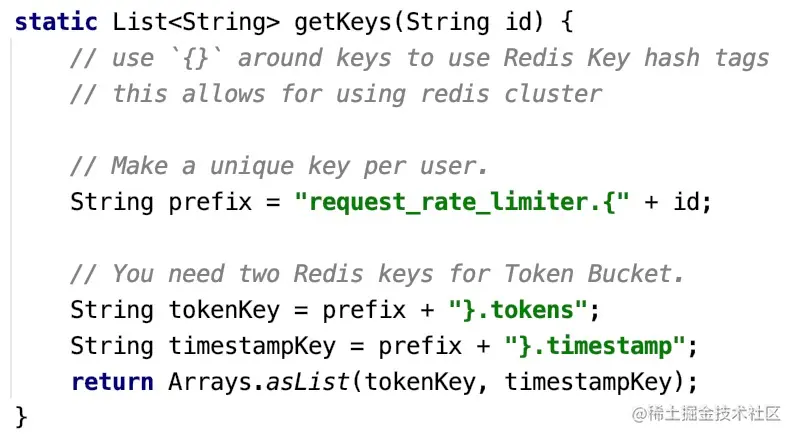 1)KeyResolver:解析资源key,比如基于uri限流、基于uri+用户id限流等,提供默认实现PrincipalNameKeyResolver,基于java.security.Principal#getName获取限流资源key;