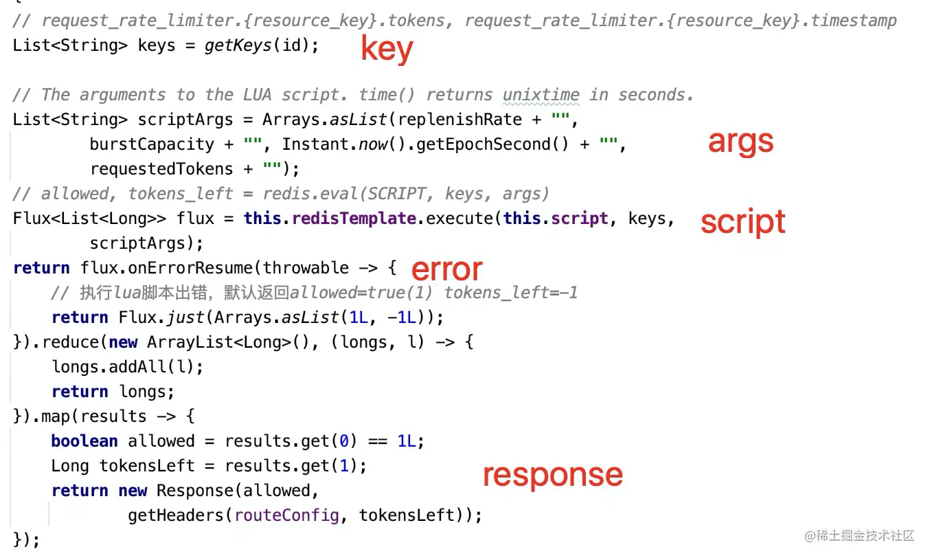 RedisRateLimiter核心逻辑都在lua脚本中,我们先搞清楚lua脚本的上下文逻辑。