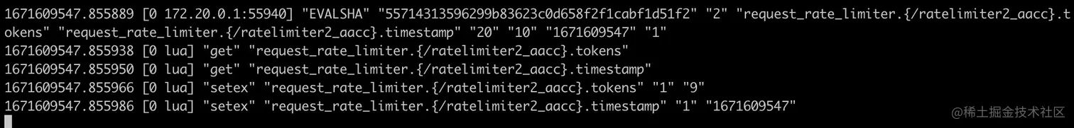 2)request_rate_limiter.{resourceKey}.timestamp:一个时间戳,代表上次经过rateLimiter的时间(其实是上次填充令牌桶的时间);