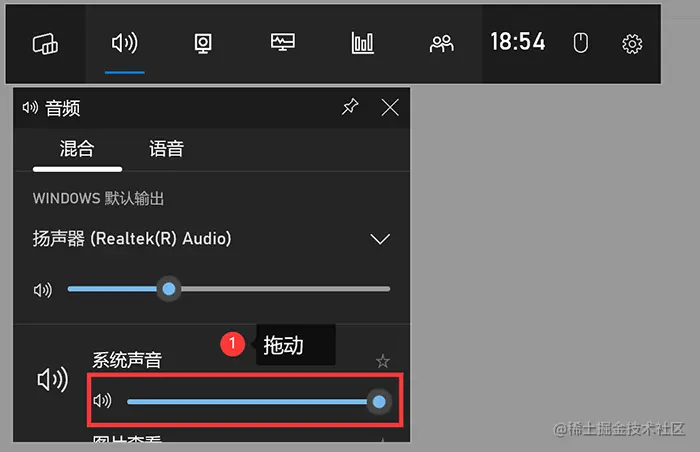 **步骤2:**在Xbox Game Bar的菜单栏中,找到并点击“音频”的选项。