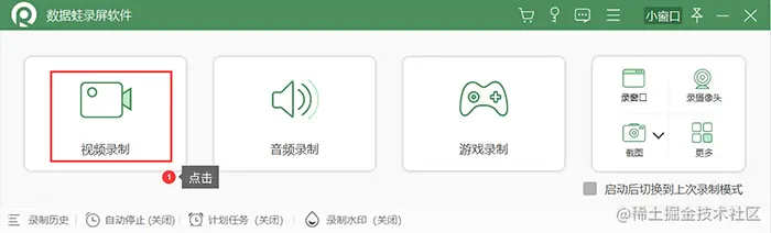 **步骤1:**打开数据蛙录屏软件,进入软件主界面后,选择左侧的【视频录制】模式。