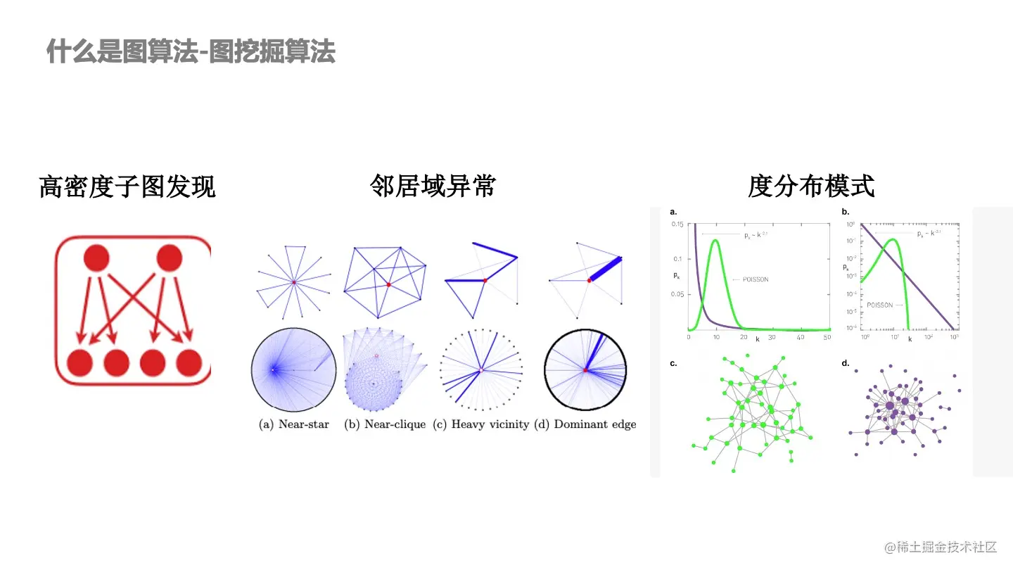 - 高密度子图,一些异常账号和异常行为对象之间会存在高密度子图。