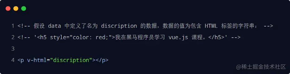 v-text 指令和插值表达式只能渲染纯文本内容。如果要把包含 HTML 标签的字符串渲染为页面的 HTML 元素,