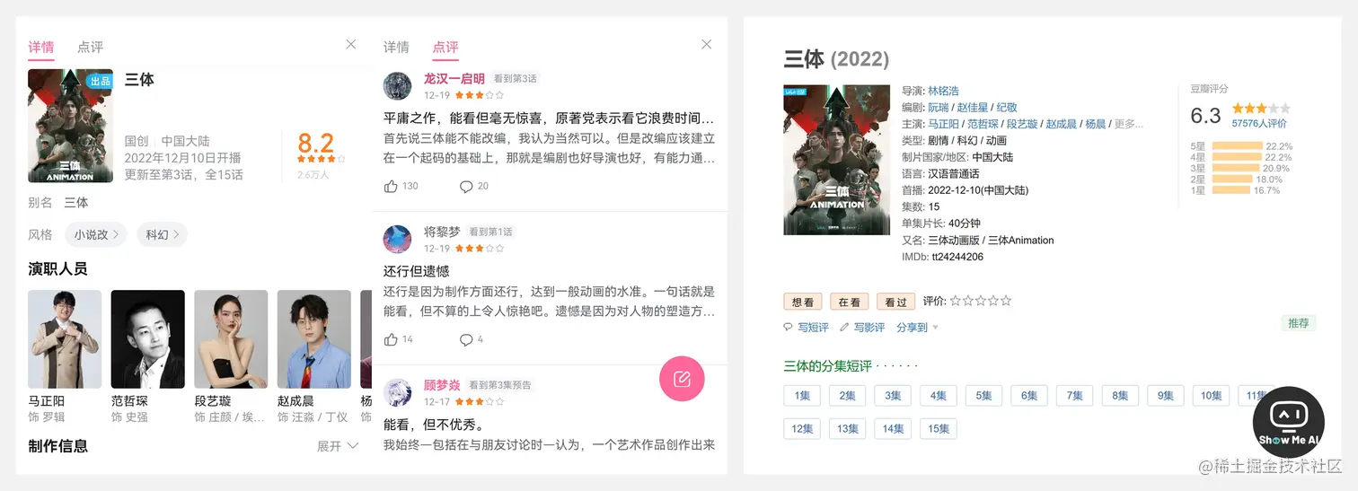 但第3集播出后,该作口碑直线下滑,豆瓣评分一路跌到 6.3 分。很多三体铁粉表示动画制作组太不用心或“别有用心”,改编不合理、过度商业化、人设崩塌等等,并忍不住激情开麦,B站首页异常活跃中...吊诡的是《三体》动画的B站评分却被锁死在 8.2 ?