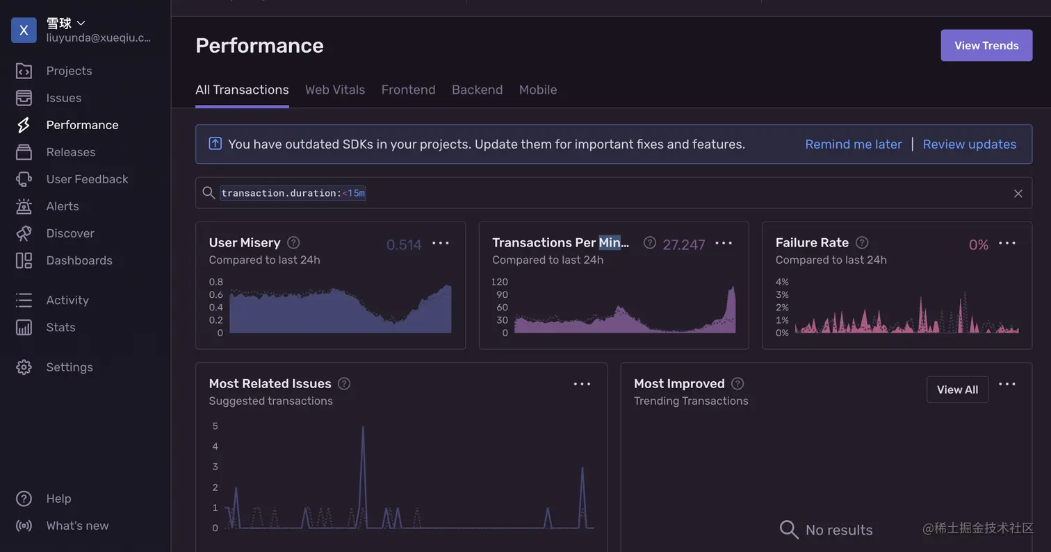 雪球通过阿里云资源服务器私有化部署了一套 2022 年最新版本的 Sentry,样式预览如下: