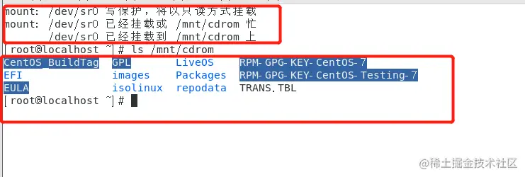 显示挂载成功,用ls命令查看,cdrom中有一系列文件,则挂载成功了。/dev/cdrom是光驱文件。光盘安装完成,这个时候就可以通过使用yum命令下载程序了。