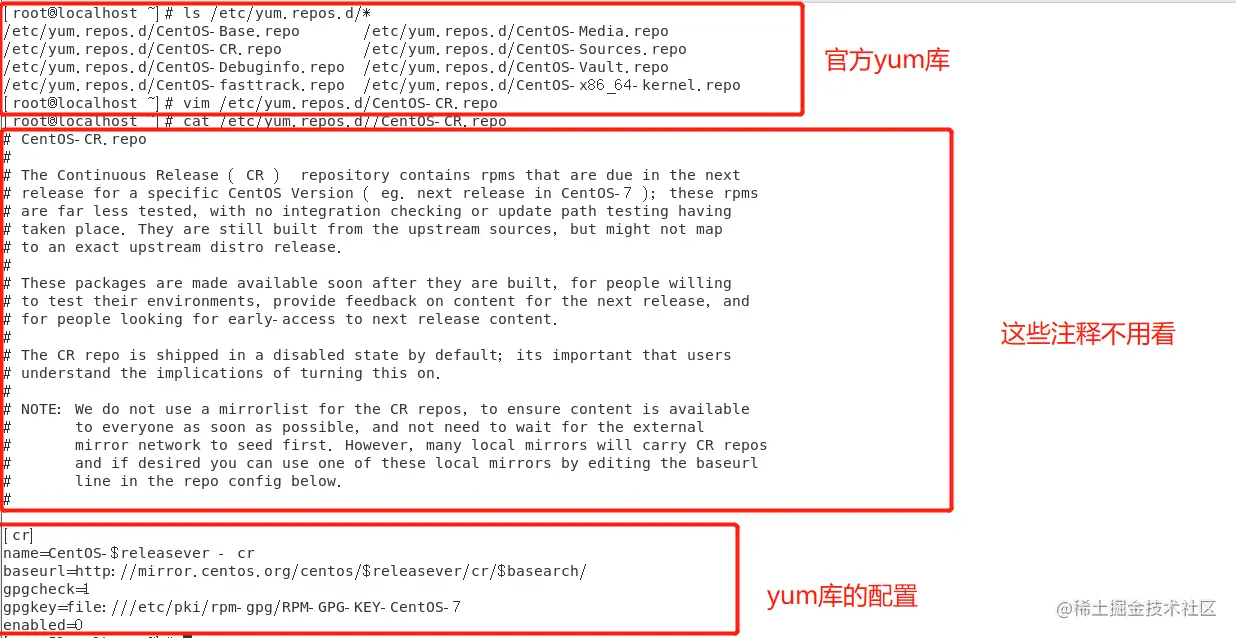 - name=CentOS-$releasever - cr :这里也定义了软件 仓库的名称,通常是为了方便阅读配置文件,name是必须有的;