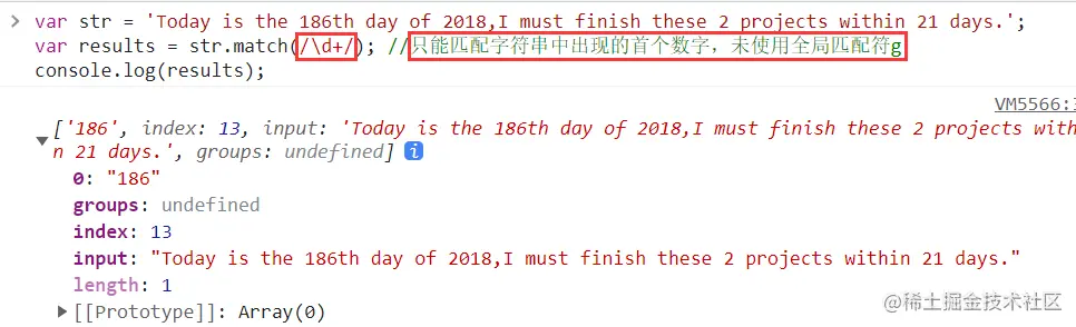 match()方法只找到源字符串中首次匹配的子串后,就立即得到返回结果,不再比较之后的剩余的部分是否还有匹配上的内容(一个数组,有匹配值,index,input)