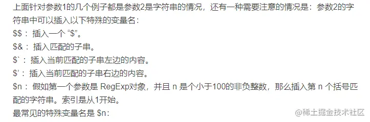 - 注意:当替换字符插入特殊变量名