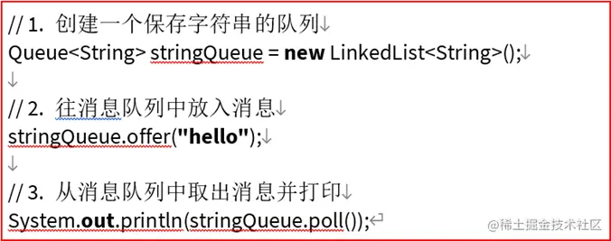 消息队列,英文名:Message Queue,经常缩写为MQ。从字面上来理解,消息队列是一种用来存储消息的队列。来看一下下面的代码