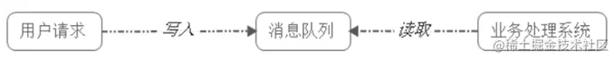 请求先入消息队列,而不是由业务处理系统直接处理,做了一次缓冲,极大地减少了业务处理系统的压力;