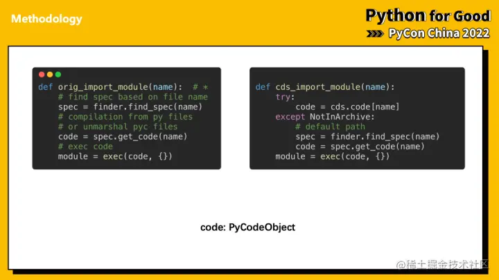 我们做的事情可以简化为右侧逻辑。同样根据包名,尝试从 mmap 中加载。如果成功,那么同样的 codeobject 也可以用于初始化。