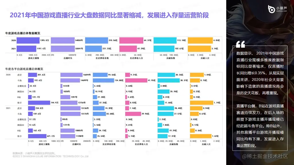 来源:小葫芦数据研究院:2021年游戏直播行业洞察报告
