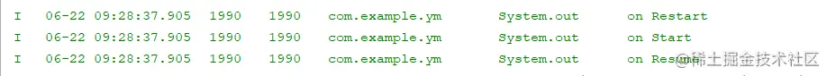 - 用户后退回到此Activity:系统会先调用onRestart方法,然后调用onStart方法,最后调用onResume方法,再次进入运行状态