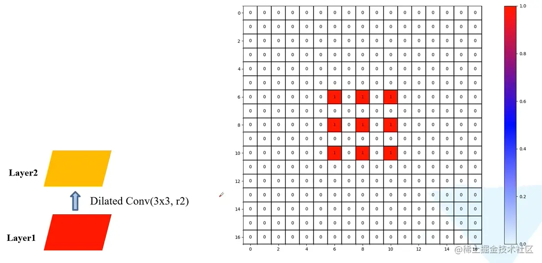 可以看到Layer4利用Layer1上像素并不是连续的,并没有利用到范围内的所有像素值,这就是gridding effect现象,这样也会导致丢失一些细节信息,所以使用的时候要避免。
