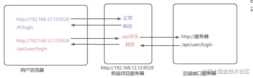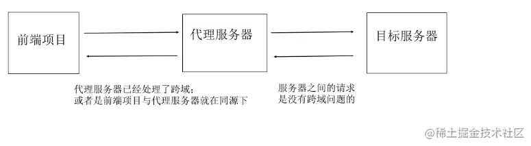 代理服务和后端服务之间由于并不经过浏览器没有同源策略的限制,可以直接发送请求