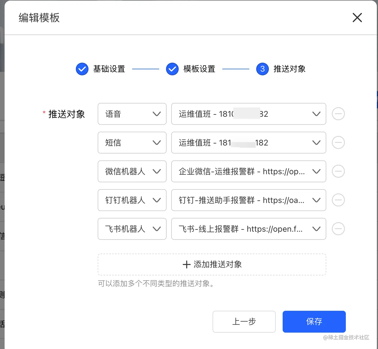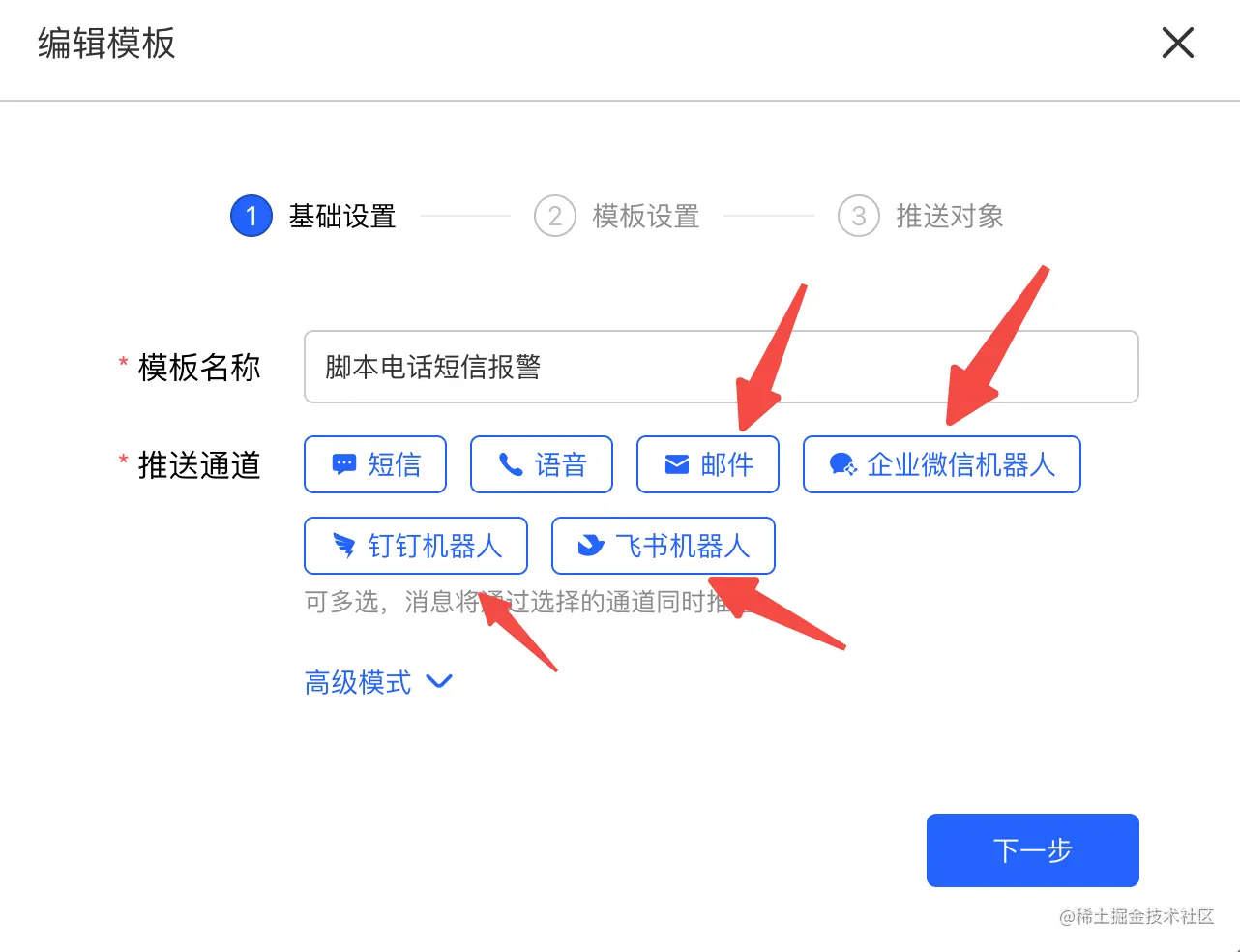 如果想让脚本支持邮件、钉钉、飞书、企业微信报警,只需要在推送助手平台上编辑模板,把邮件、钉钉、飞书、企业微信打开配置一下就可以实现不改动脚本的情况下实现。