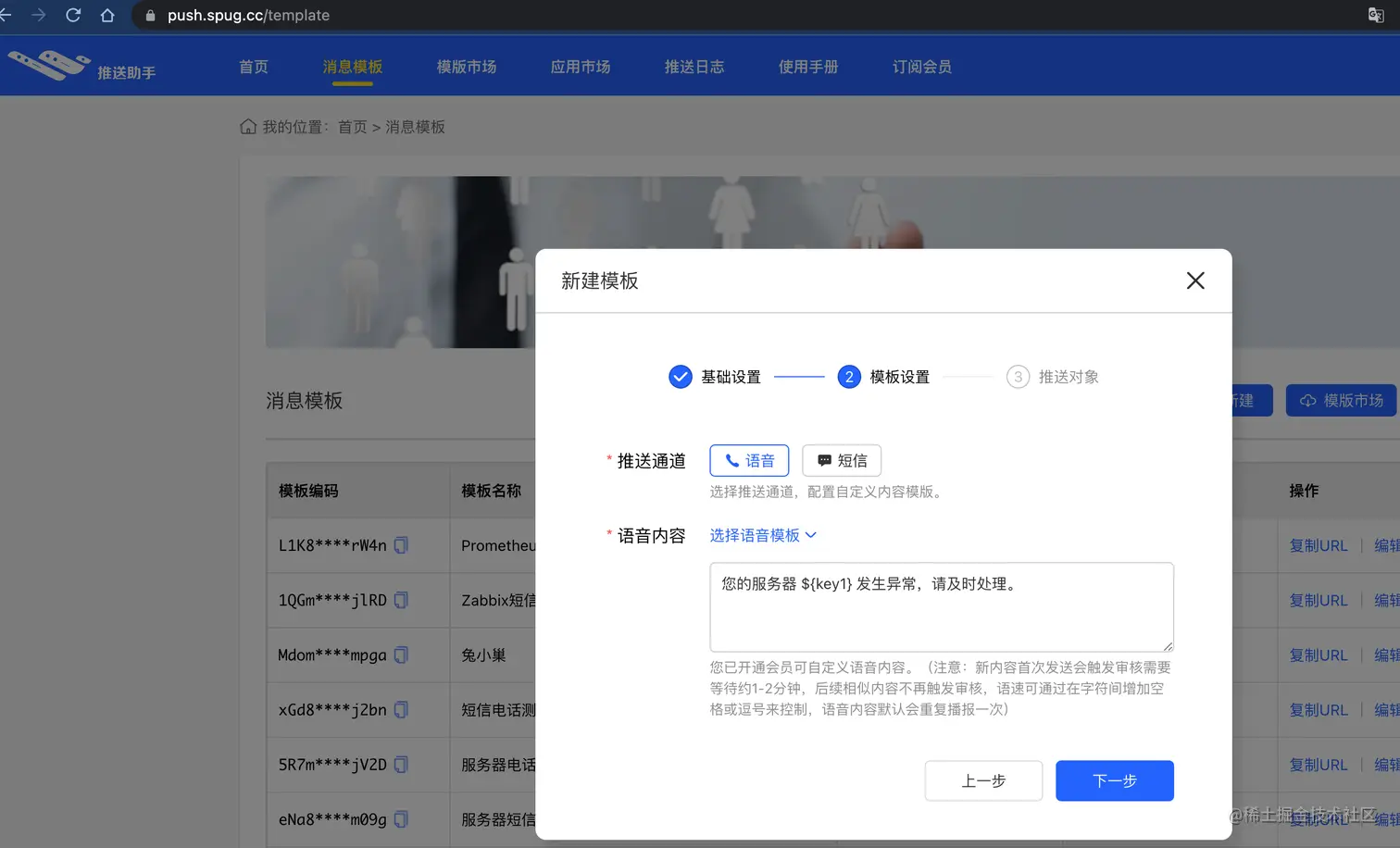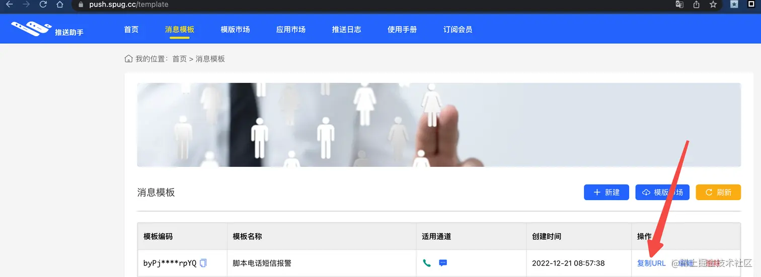2、配置完模板,复制模板 URL,就可以用脚本打电话发短信