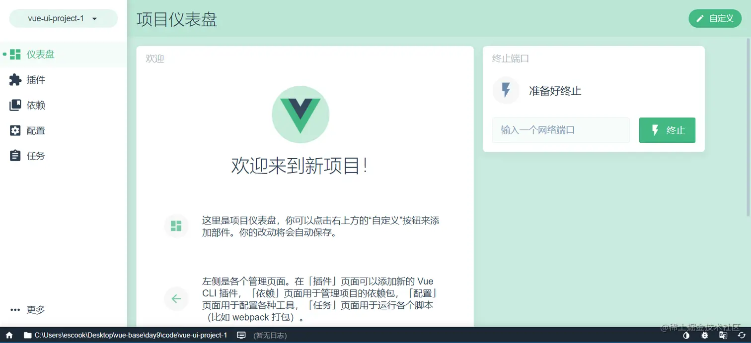 vue ui 的本质:通过可视化的面板采集到用户的配置信息后,在后台基于命令行的方式自动初始化项目: