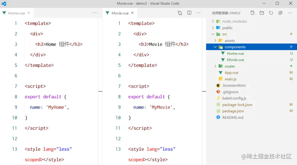 步骤2:在 src -> components 目录下,创建需要使用路由切换的组件: