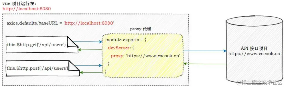 ②vue 项目发现请求的接口不存在,把请求转交给proxy 代理