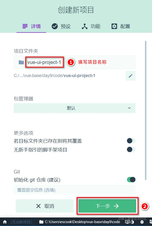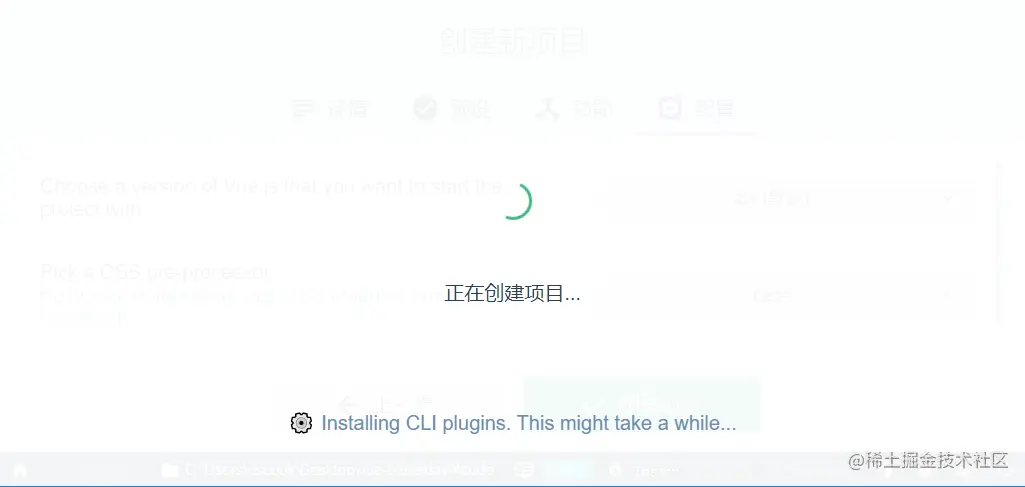 步骤7: 创建项目并自动安装依赖包: