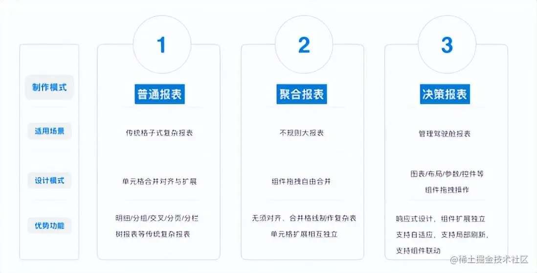 然而,不同目的、用户、业务所需要的报表在设计上确实存在着很大的差异。充份理解程序员这些痛点的FineReport也在软件里嵌入了这三种主流报表类型,你只需要直接调用就行,省去了从头学习报表制作复杂思路所需要的精力。