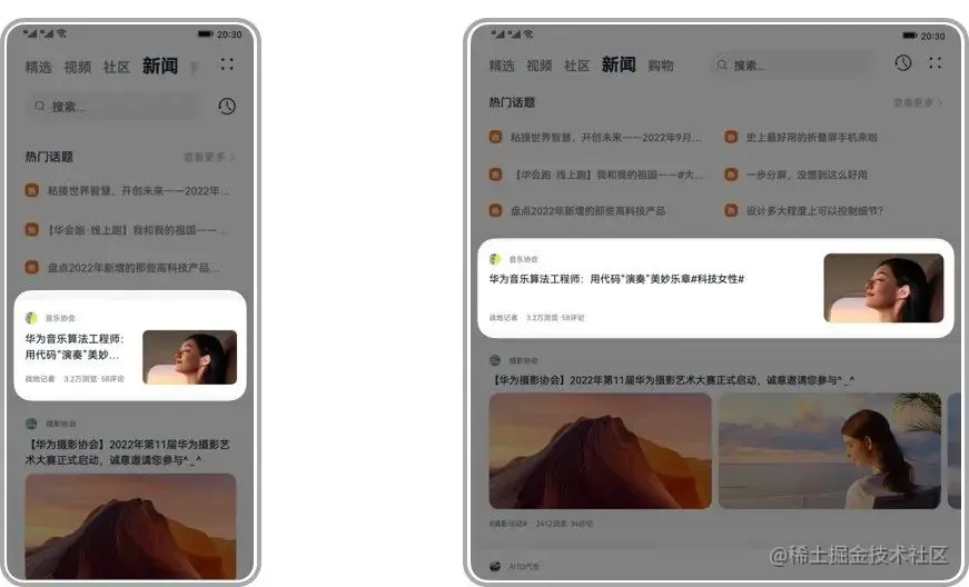 本篇内容的所有方法和案例在HarmonyOS折叠屏设计规范中都有详细的介绍,同时因为篇幅有限,部分折叠屏设计规范中的内容并未在本篇文章中提及,包括电商类和H5广告长图的宽屏适配案例,以及针对影音娱乐、社交通讯、新闻阅读、生活服务等场景的设计范式等。