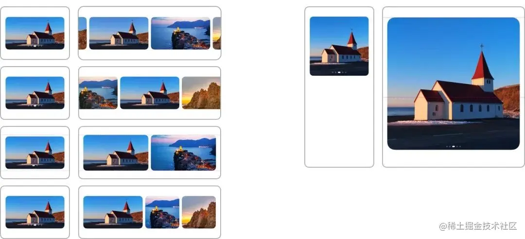 上下图文:在保持图片高度不变的情况下延伸布局进而显示更多图片,或是将图片和文本通过挪移布局调整为左右布局显示。
