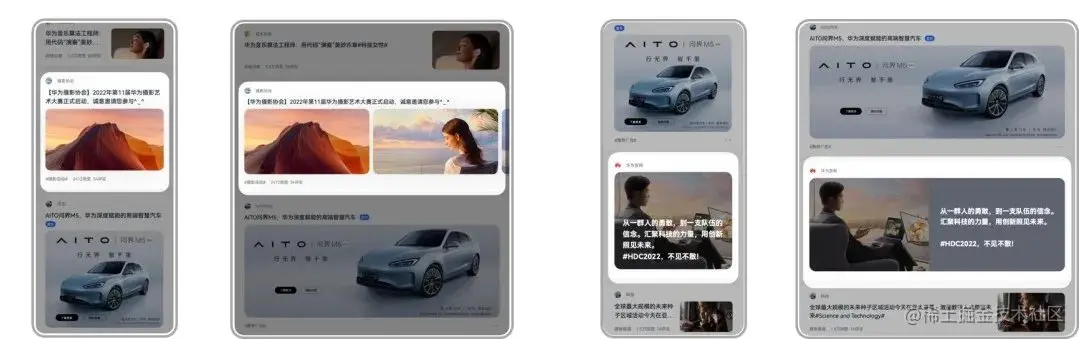 Banner卡片:可通过延伸布局、创新样式在一行显示更多的Banner卡片,要避免单张Banner卡片直接放大显示过高的问题。