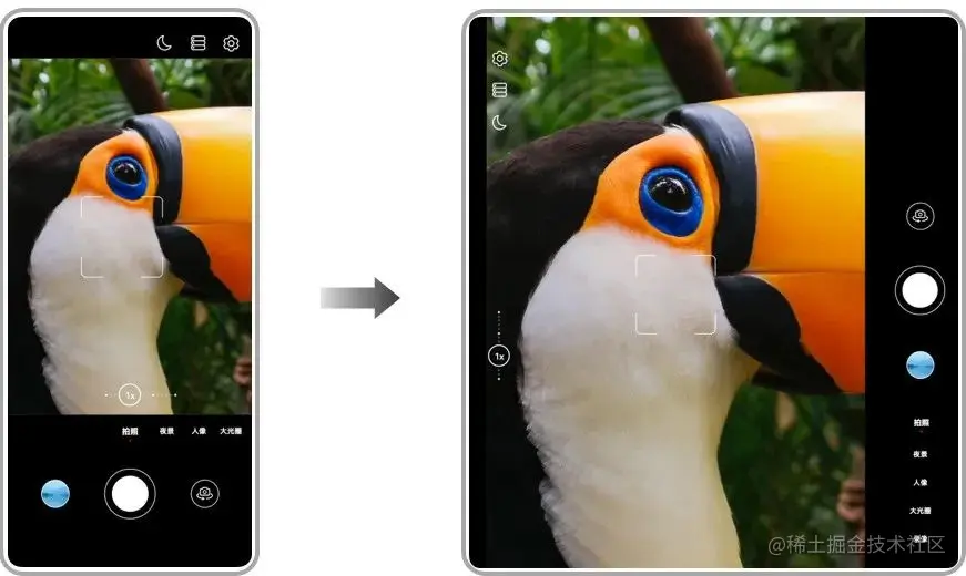 拍照取景的时候,用户展开折叠屏希望看得更清晰。此时展开态取景范围、照片比例等参数设置保持不变,让用户只需聚焦于取景框里面的人物或景物。