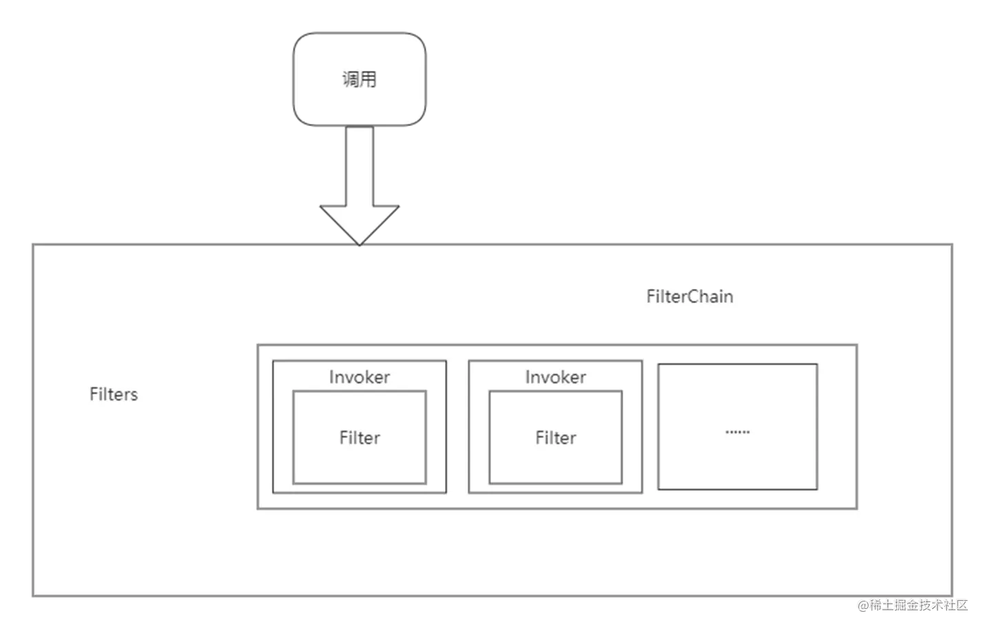dubbo通过将每个过滤器类filter封装成dubbo的核心模型invoker进行组装,最终形成晚上的过滤器责任链filterChain。