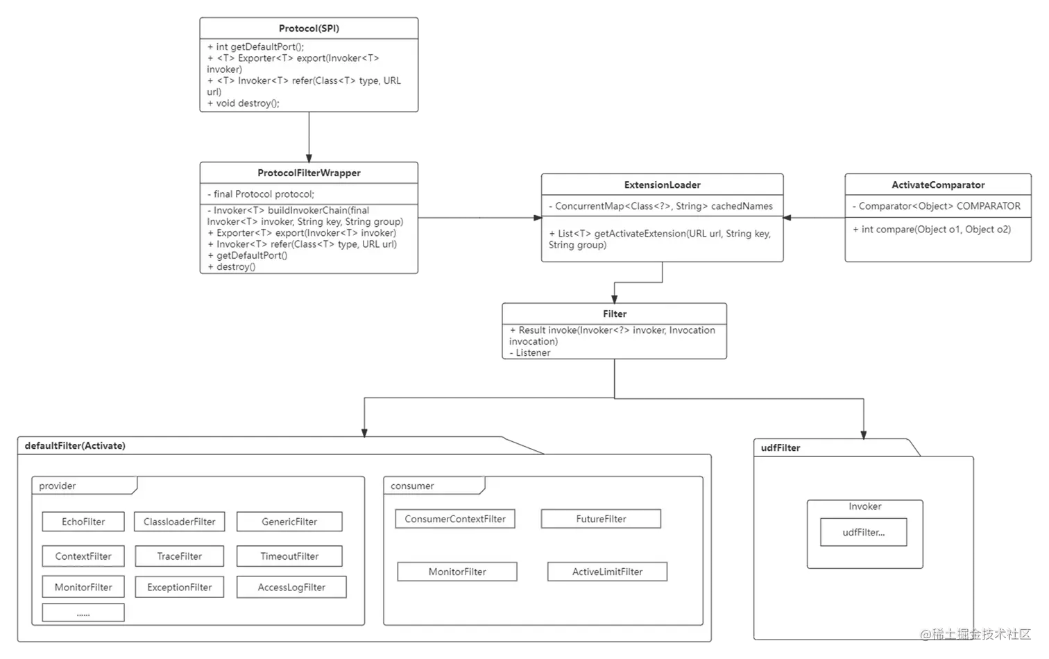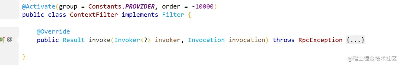 以ContextFilter为例,系统默认过滤器包含Activate注解,用于指定所属分组与排序权重,用户自己实现的过滤器则不能添加Activate注解通过发布时指定所需的过滤器