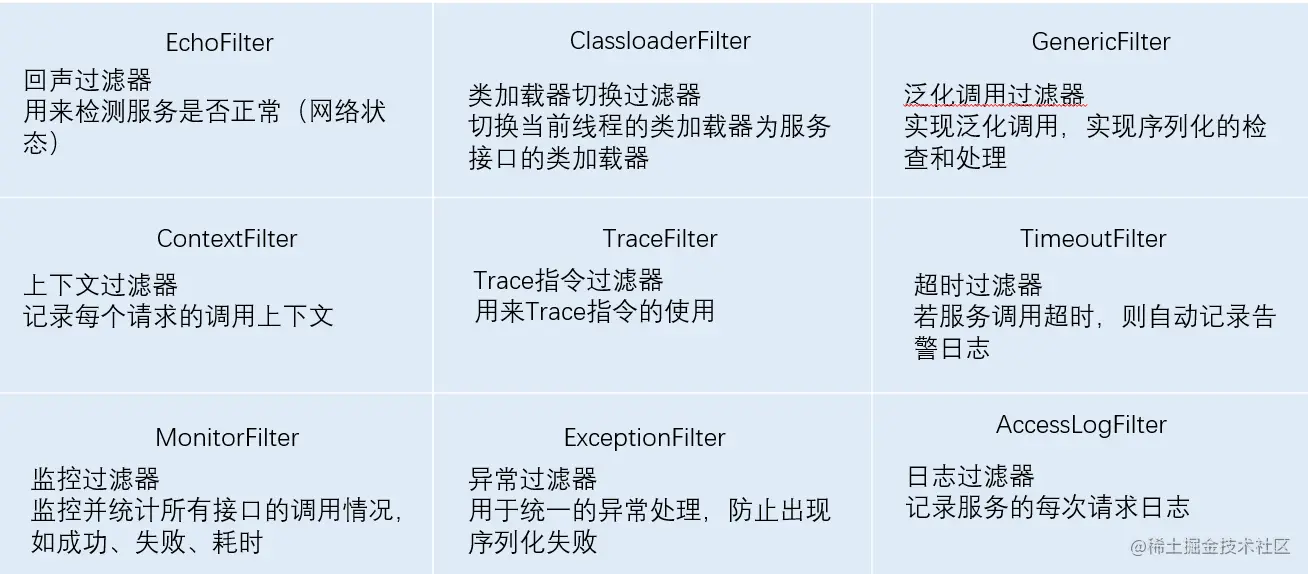 三、Dubbo中各Filter责任介绍