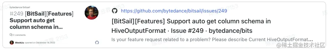 类似的,社区也新增了一个 issue 用于支持在 Hive writer 中自动获取 schema。
