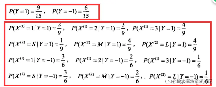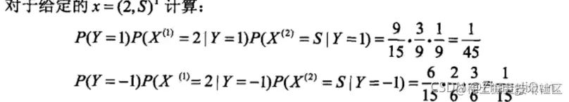 #朴素贝叶斯算法 贝叶斯估计, λ=1 K=2, S=3; λ=1 拉普拉斯平滑